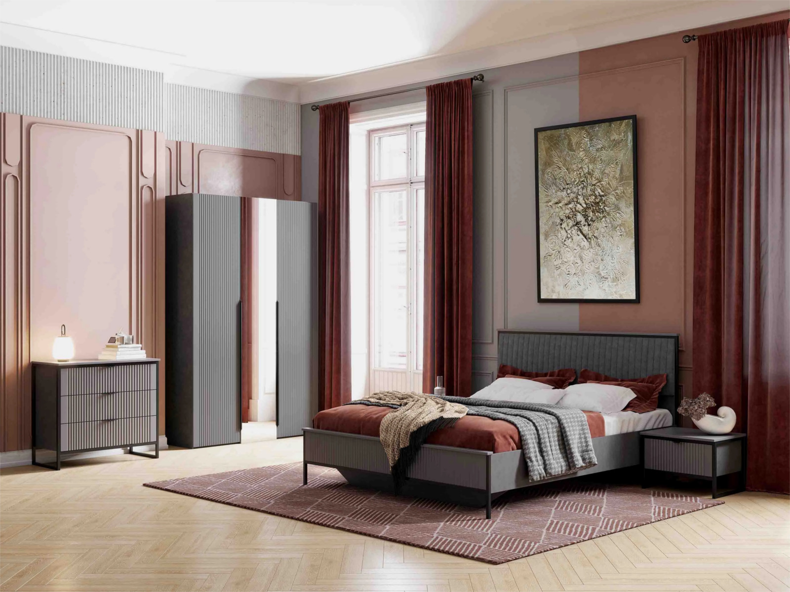 Цена за комплект: Комод, Кровать, Тумба, Шкаф 3 дверный