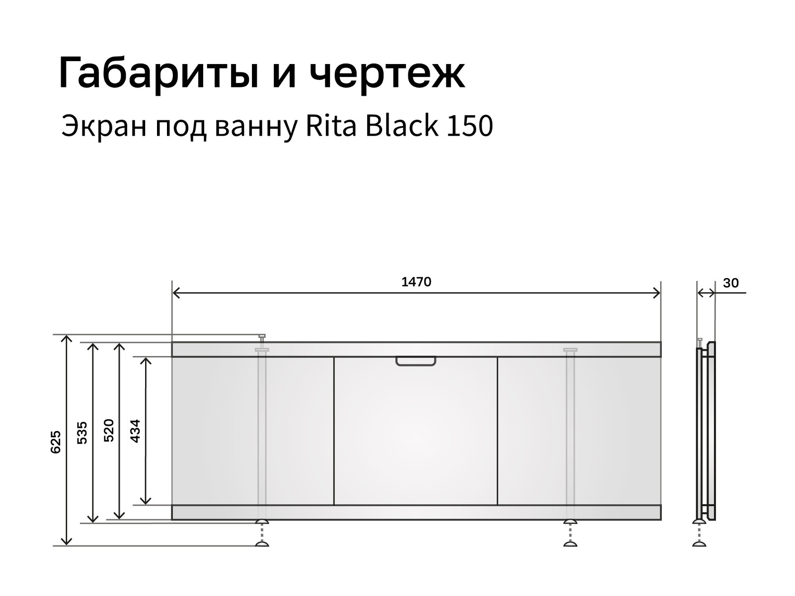 Экран под ванну МДФ Rita Black 1500 мм дуб