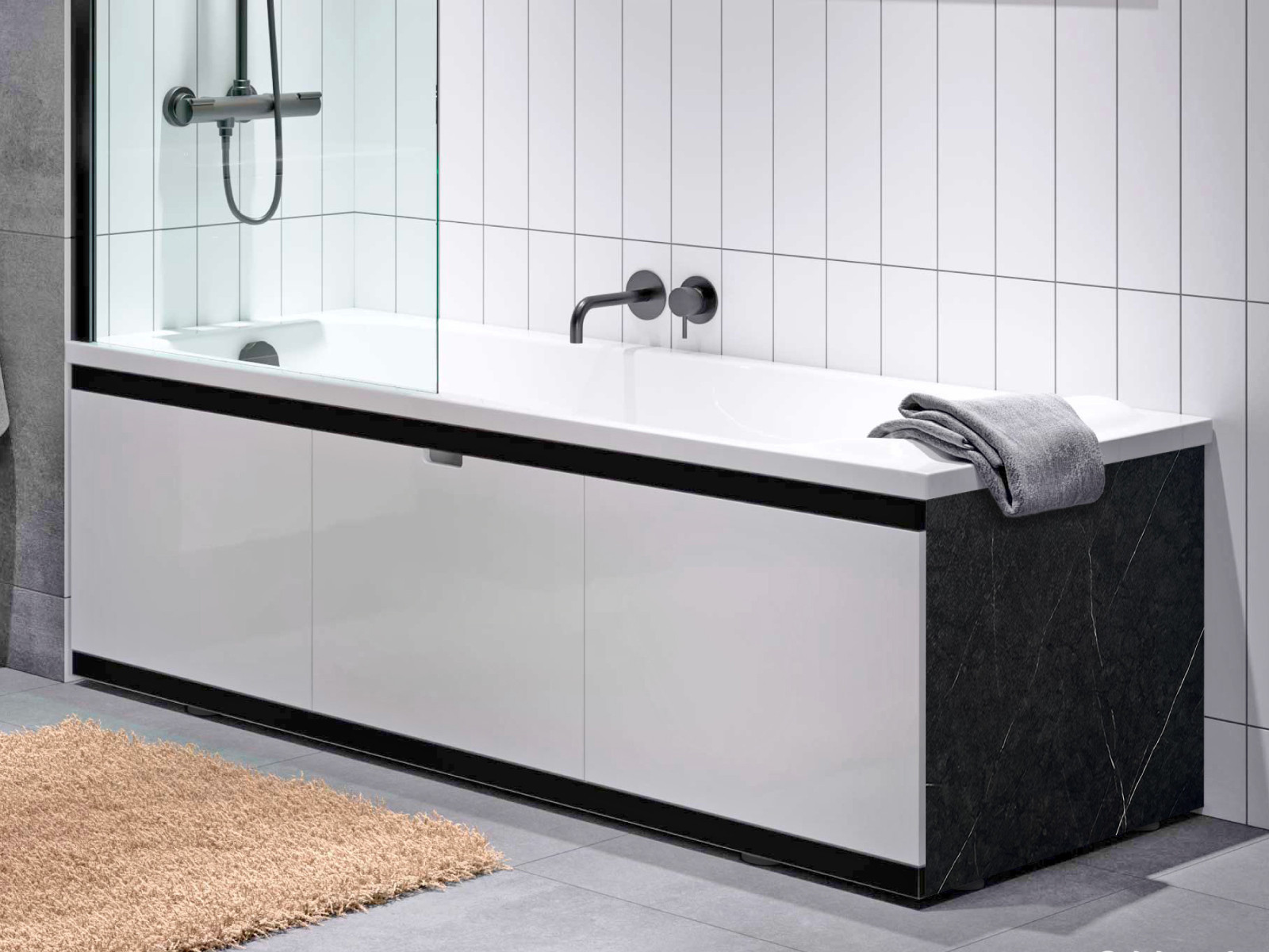 - Экран под ванну МДФ Rita Black 1800 мм белый