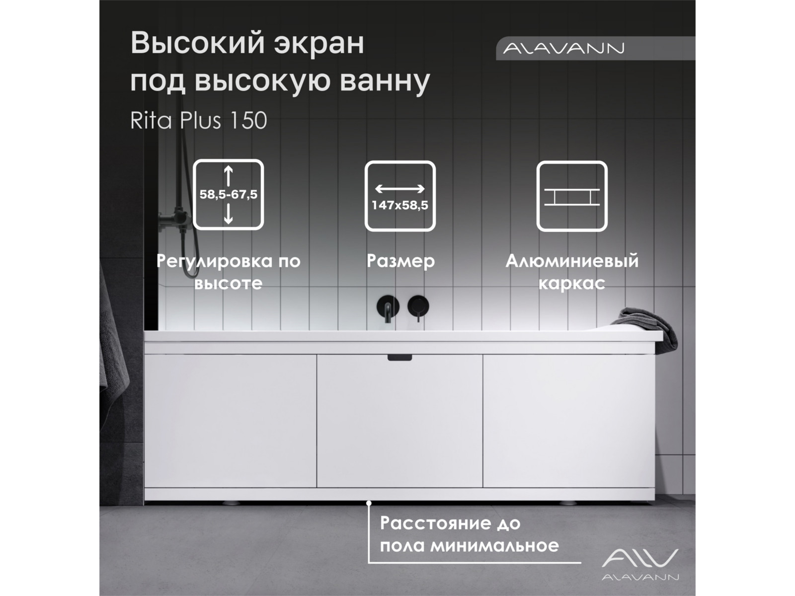 - Экран под ванну МДФ Rita Plus 1500 мм