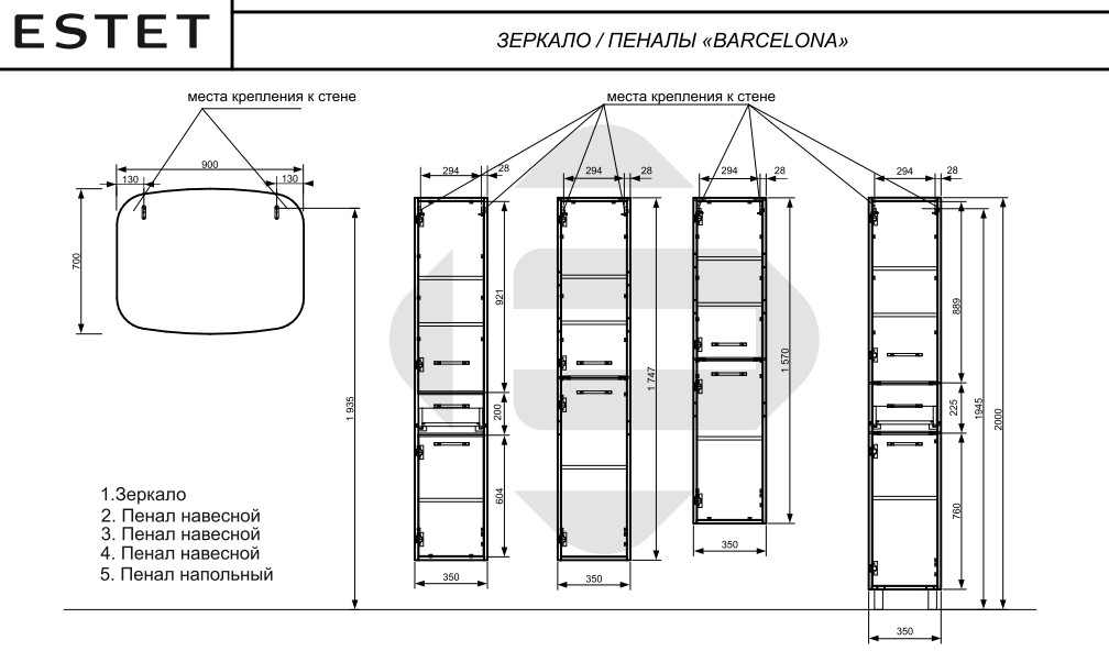 - Пенал подвесной Barcelona h=1747мм левосторонний 1 ящик