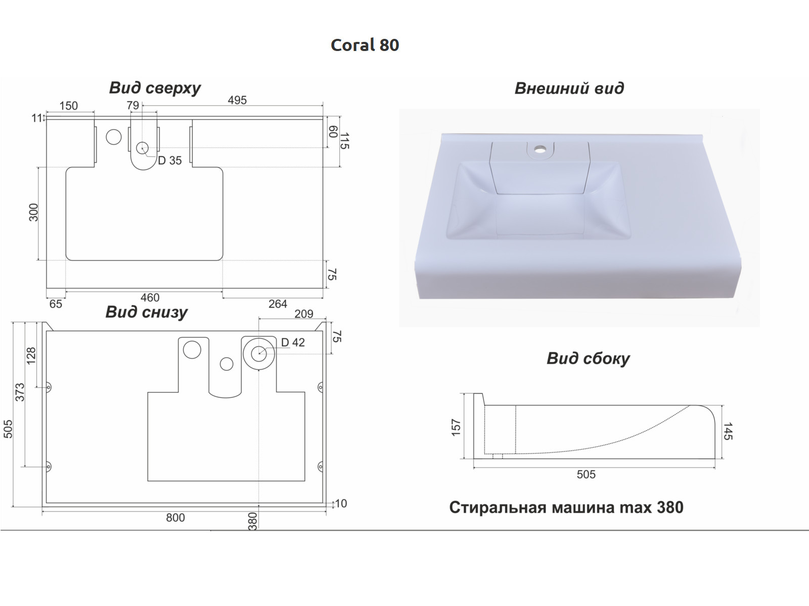 - Раковина над стиральной машиной Coral 80