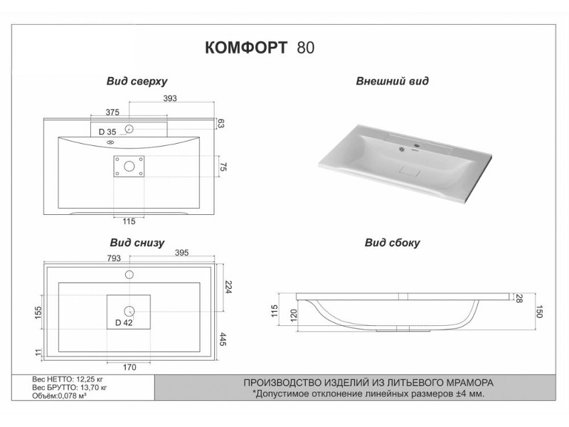 - Тумба Альба 80 подвесная 1 ящик раковина Комфорт 80 мята