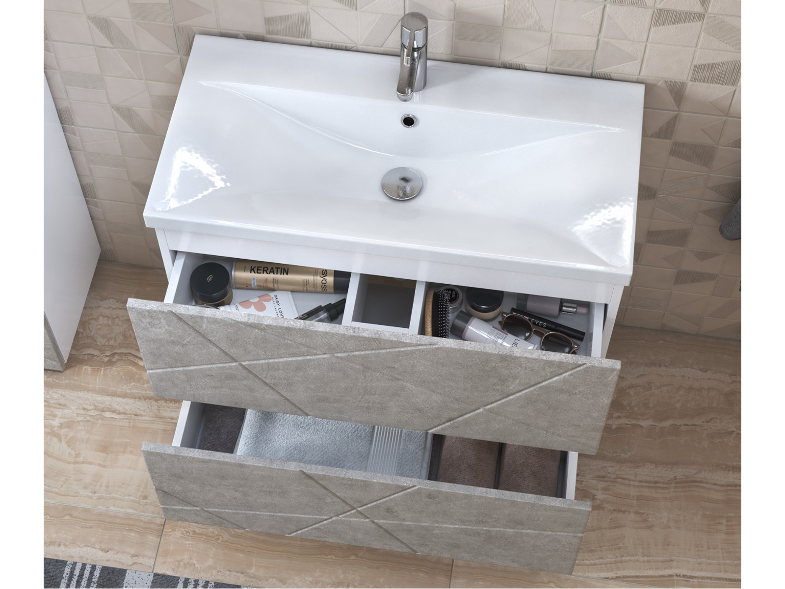 - Тумба Geometry 800-0-2 умывальник 9696 бетон