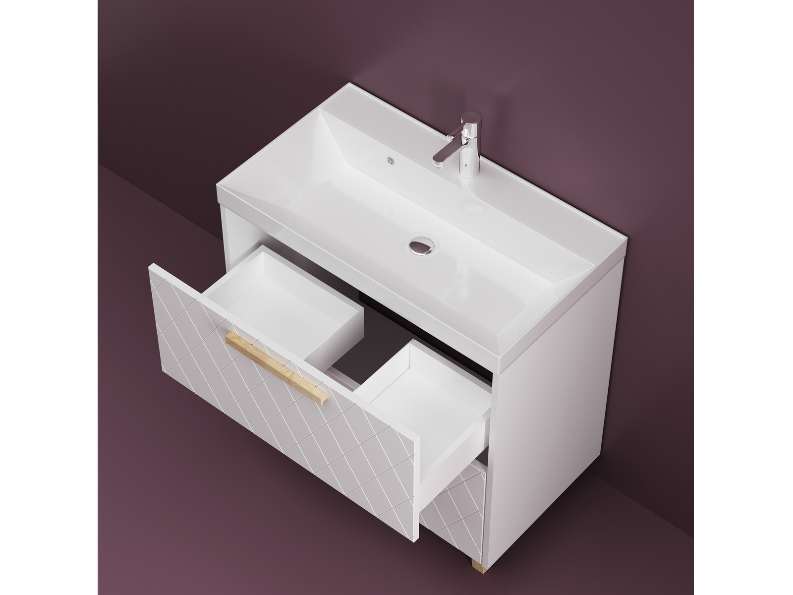 - Тумба Кристалл 80 напольная 2 ящика ручка дуб, раковина Слим 80 Суфле