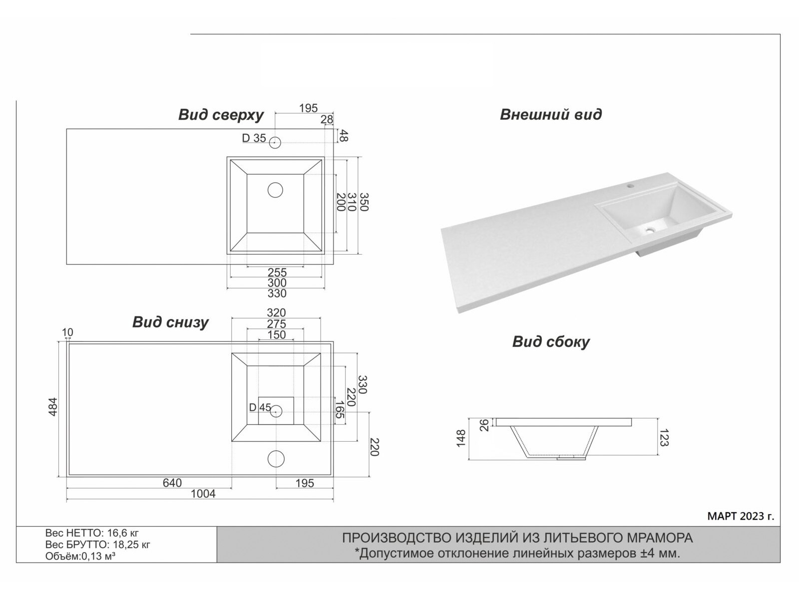 - Тумба Леон Риф 57 подвесная 2 ящика раковина под Marshall 120 правая