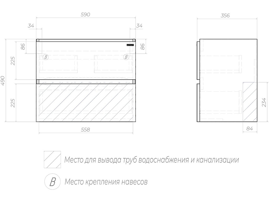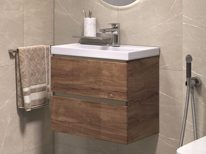 - Тумба под раковину Mondi 600-0-2 Madera Classica Slim навесная акация темная