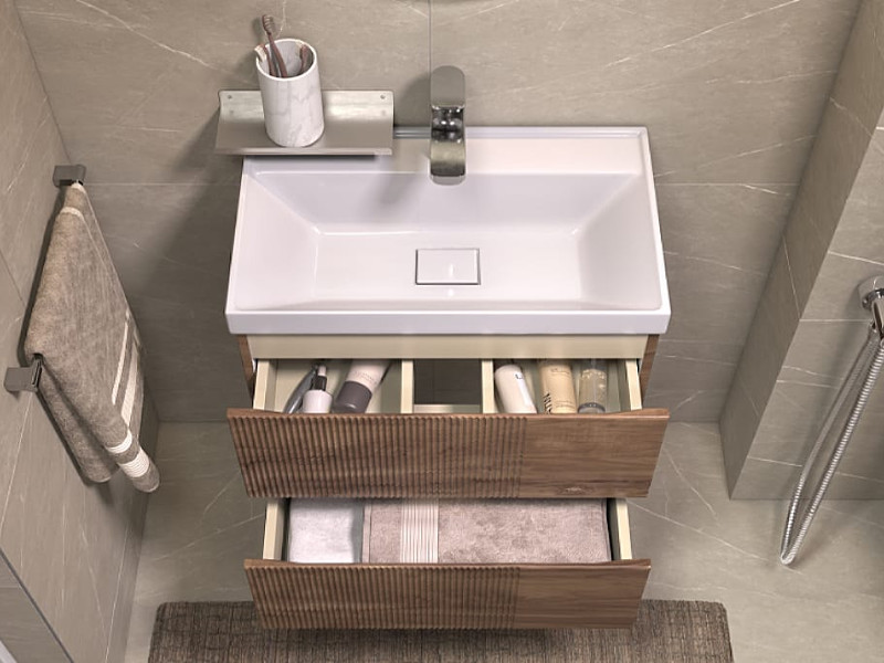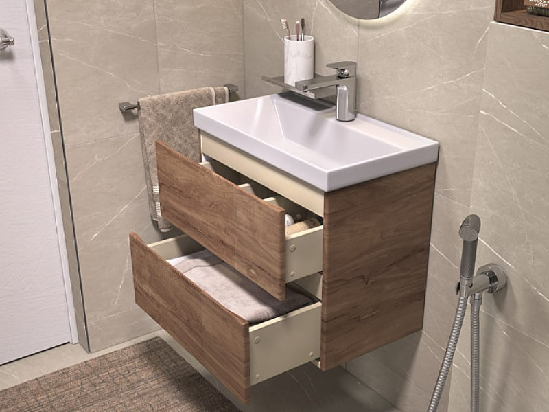 Материалы тумбы: Влагостойкая МДФ, полимерное покрытие ПВХ, ЛДСП, европейская фурнитура