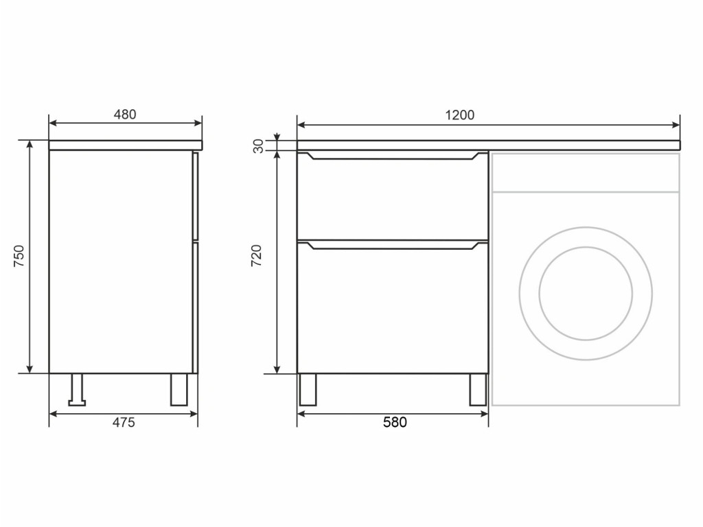 Тумба под стиральную машину Uperwood Tanos 60 см, напольная, 2 ящика, белая/графит