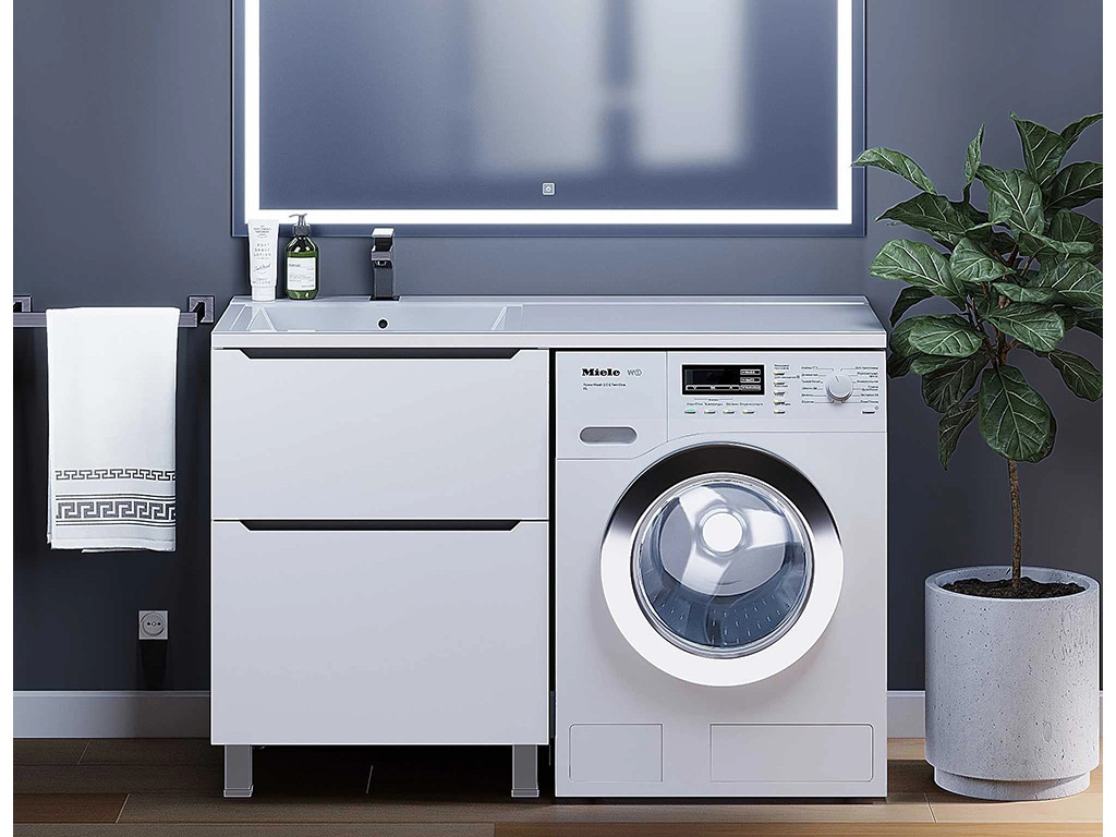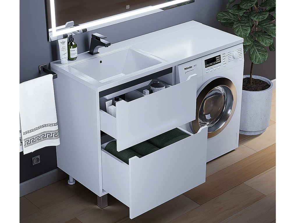 - Тумба под стиральную машину Uperwood Tanos 60 см, напольная, 2 ящика, белая/графит