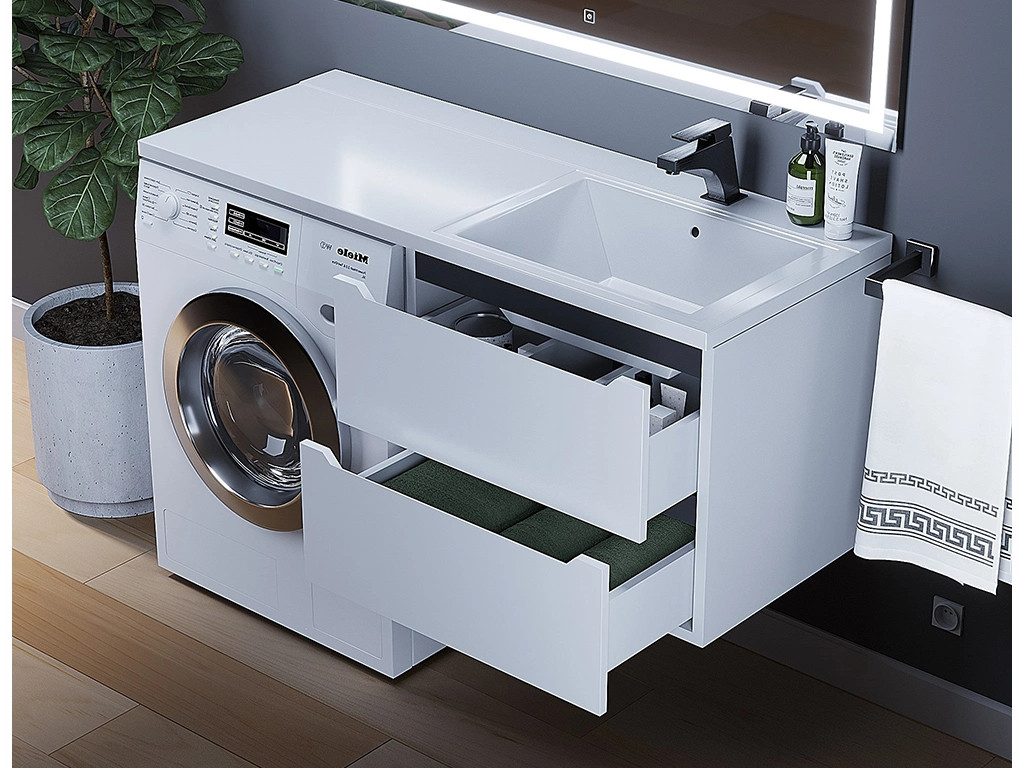 - Тумба под стиральную машину Uperwood Tanos 60 см подвесная правая белый/графит
