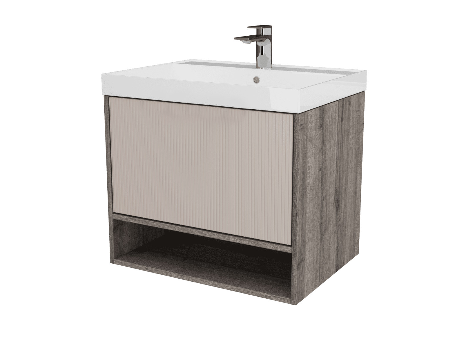 Тумба Рица 80 подвесная 1 ящик, ниша раковина Комфорт 80 cерый/керамика