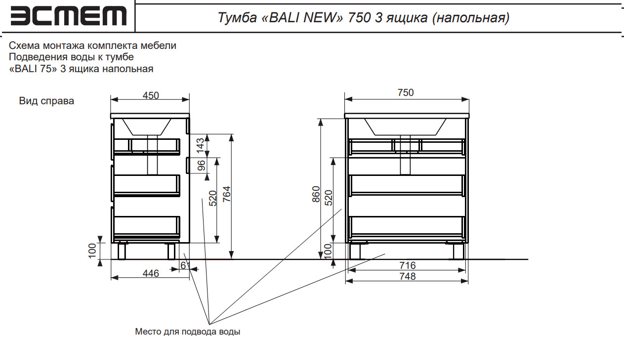 - Тумба с раковиной Bali new 750 напольная 3 ящика