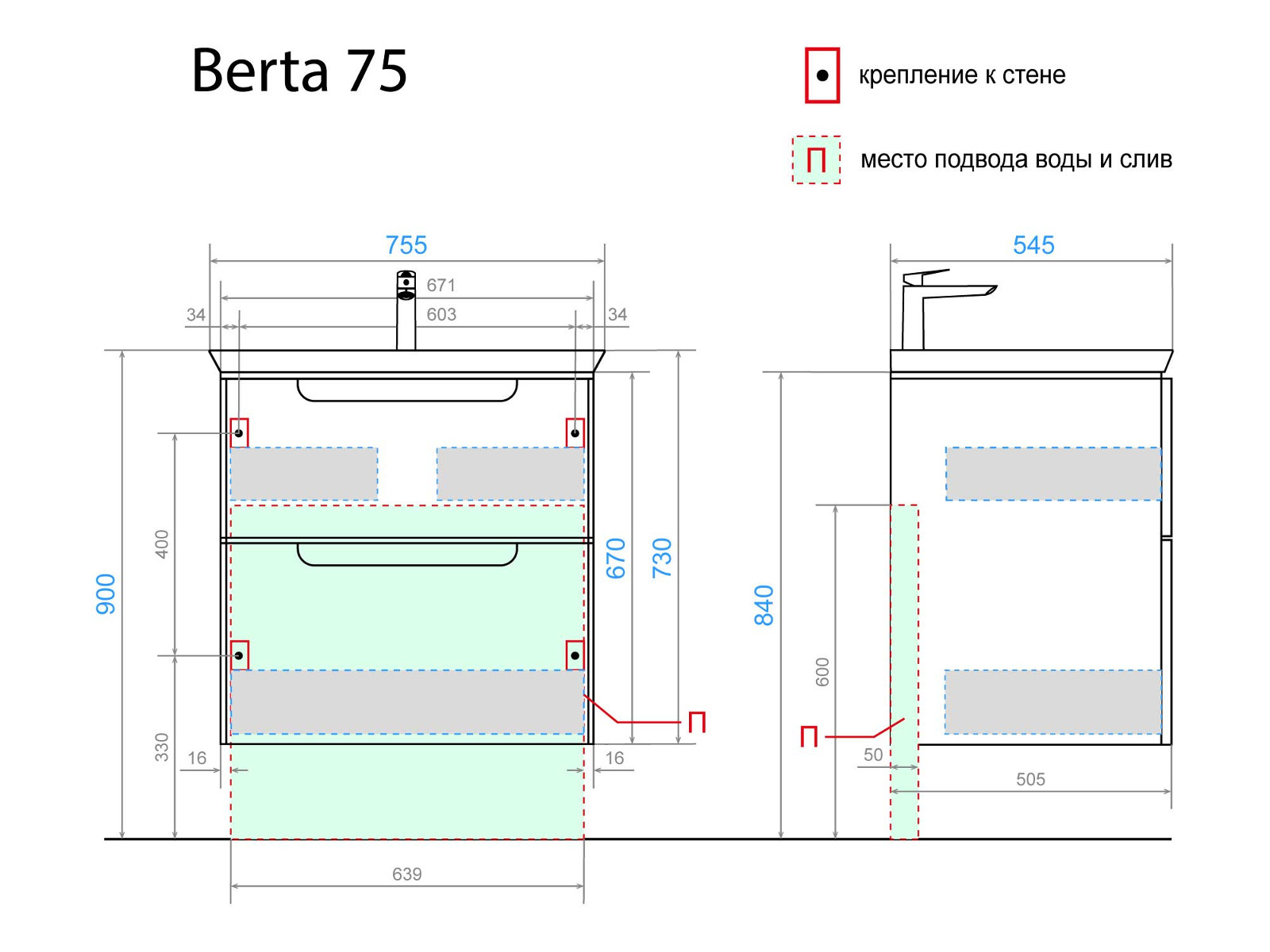 - Материал раковины: Фаянс