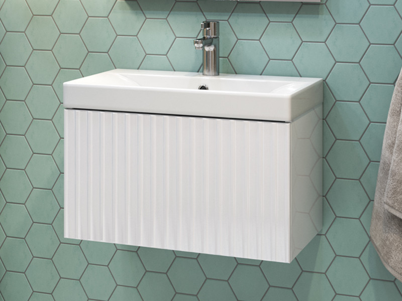 Материалы тумбы: МДФ, влагостойкая ЛДСП, полимерное покрытие ПВХ, врезная ручка, европейская фурнитура