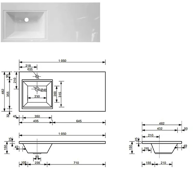 - Тумба с раковиной Dallas Luxe 1050 навесная 2 ящика левая