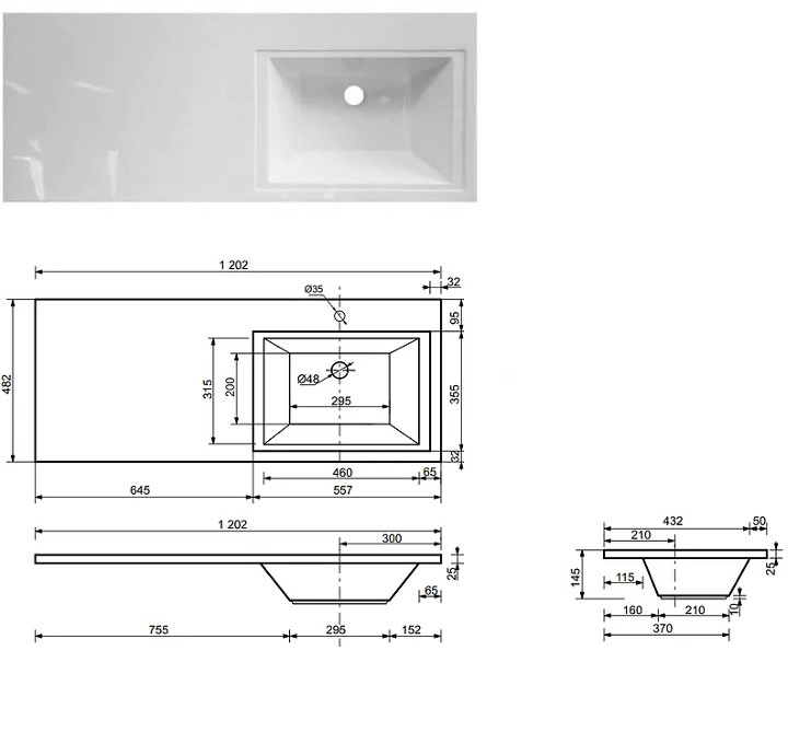 - Тумба с раковиной Dallas Luxe 1200 напольная 2 ящика правая