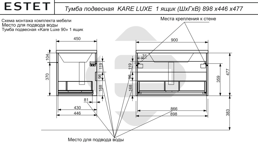 - Тумба с раковиной Kare Luxe 900 навесная 1 ящик