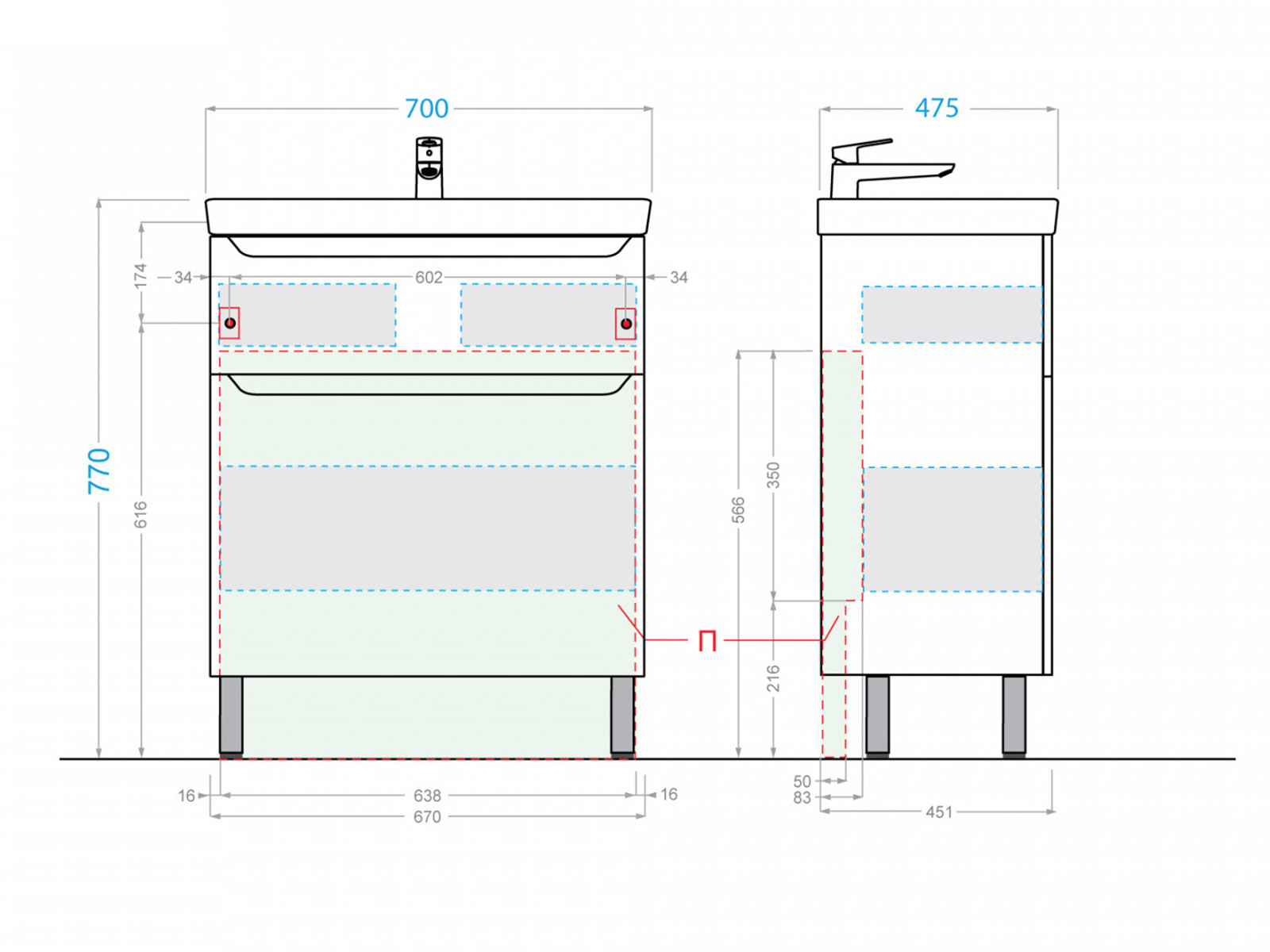 - Тумба с раковиной Lana 70 белая Умывальник Q 70