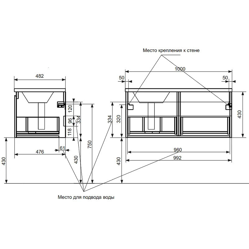 - Тумба с раковиной слева Dallas Luxe 1000 навесная 1 длинный ящик