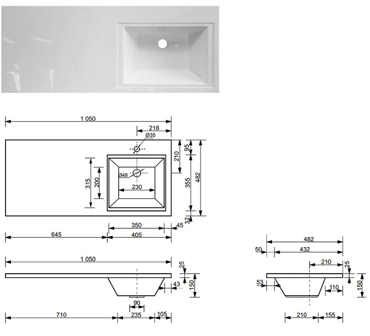 - Тумба с раковиной справа Dallas Luxe 1050 навесная 1 длинный ящик