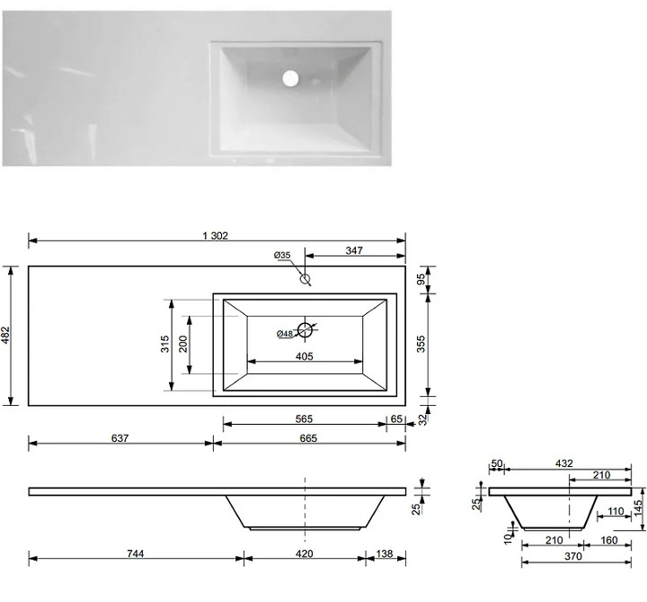 - Тумба с раковиной справа Dallas Luxe 1300 навесная 1 длинный ящик