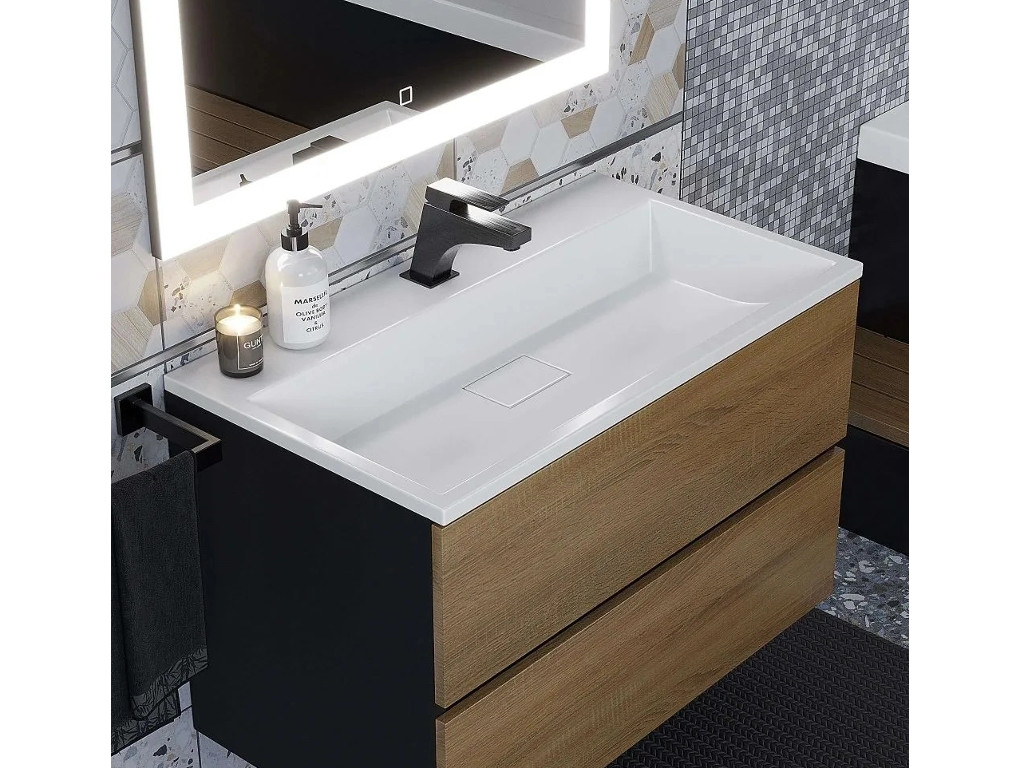 Тумба с раковиной Uperwood Barsa 80 см раковина белая-тумба черная/дуб сонома