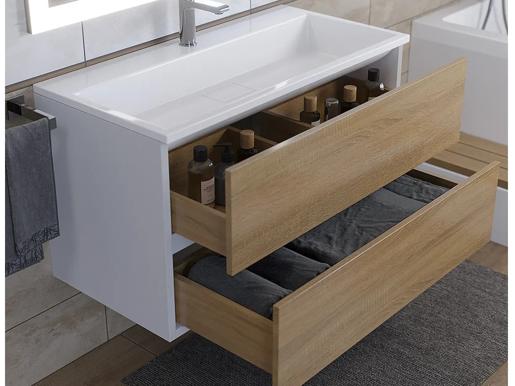 - Тумба с раковиной Uperwood Barsa 90 см раковина белая-тумба белая/дуб сонома