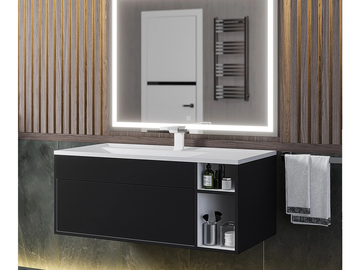 - Тумба с раковиной Uperwood Lotus Premium черная 100 см