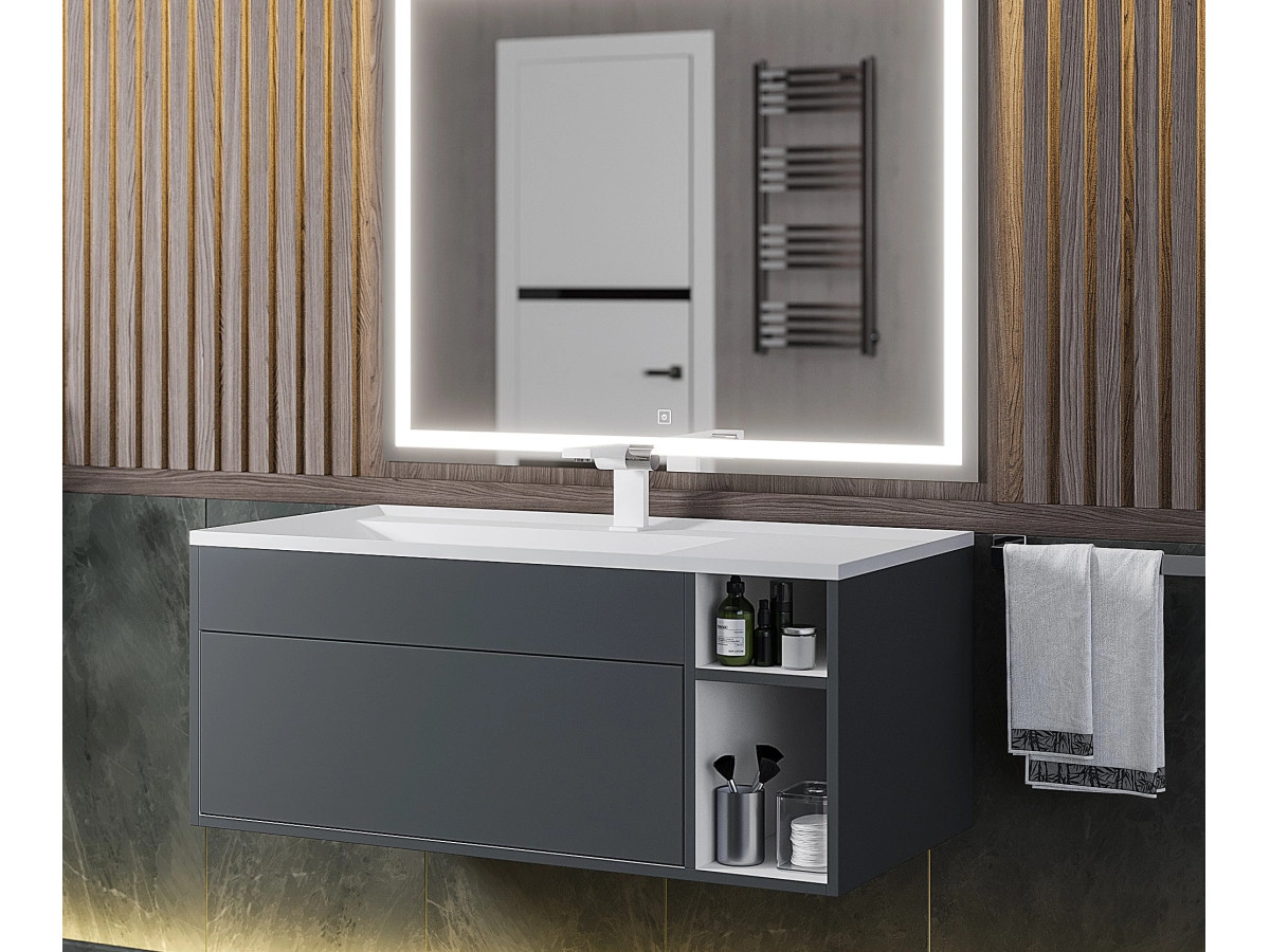 - Тумба с раковиной Uperwood Lotus Premium серая 100 см