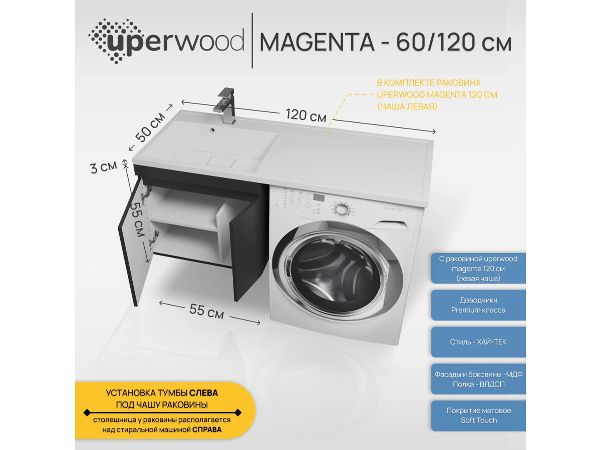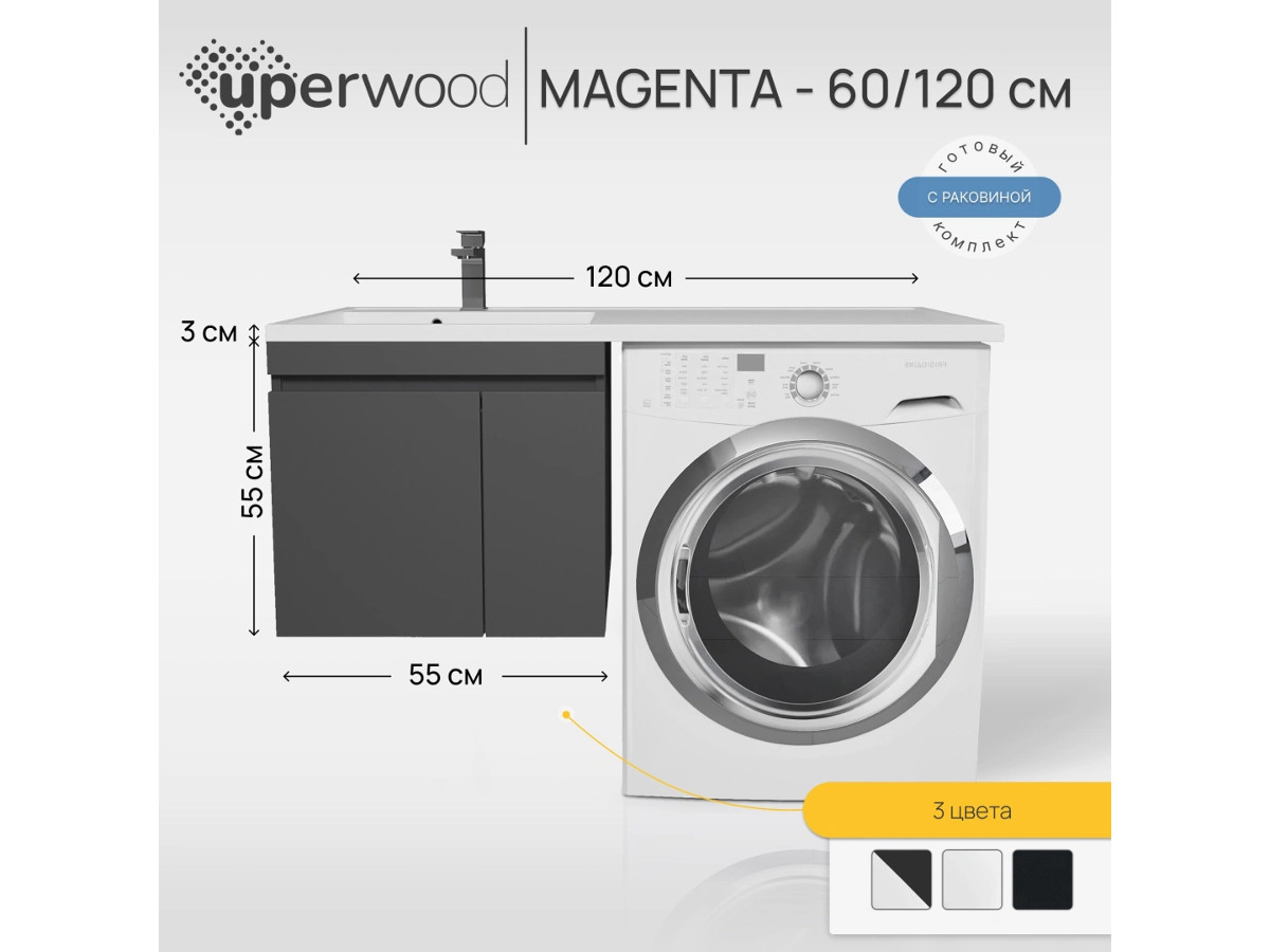 - Тумба с раковиной Uperwood Magenta 60-120 см подвесная черная с дверцами левая