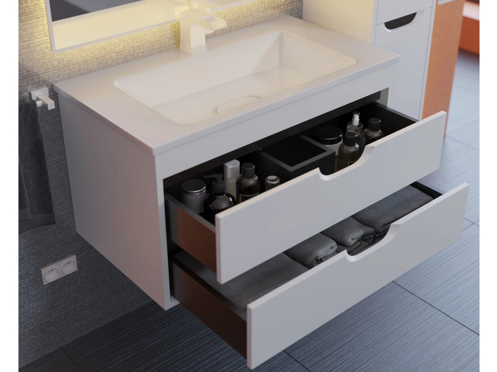 - Тумба с раковиной Uperwood Modul матовая белая/графит 80 см