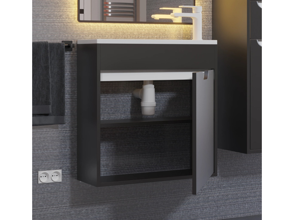 - Тумба с раковиной Uperwood Modul матовая черная 60 см