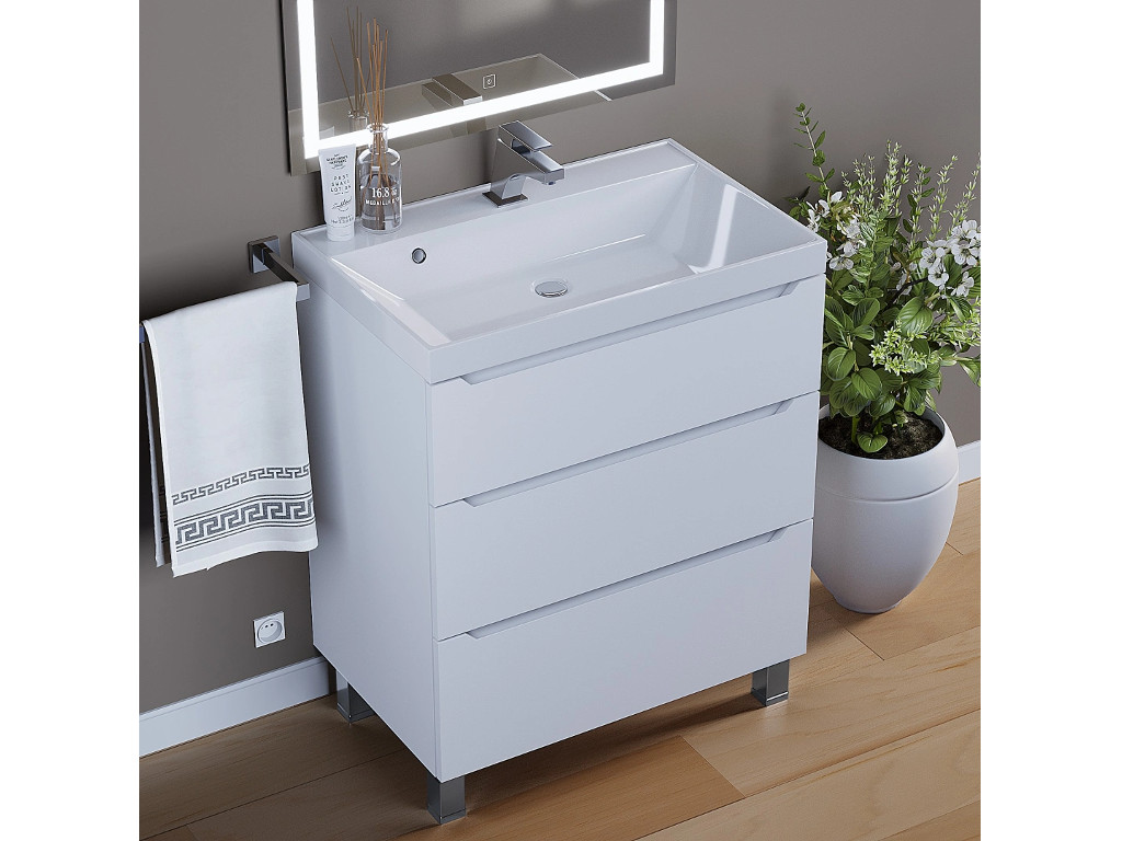 Тумба с раковиной Uperwood Tanos 3 ящика напольная 70 см белая