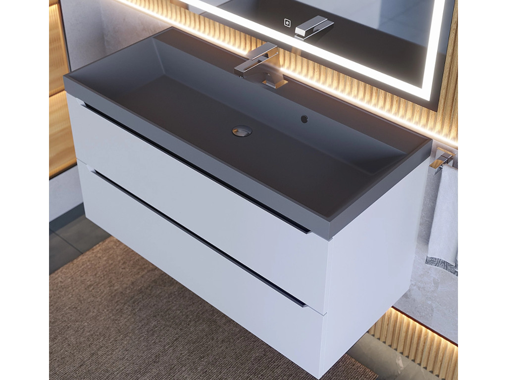 Тумба с раковиной Uperwood Tanos-Classic Quartz белая графит/бетон 100 см