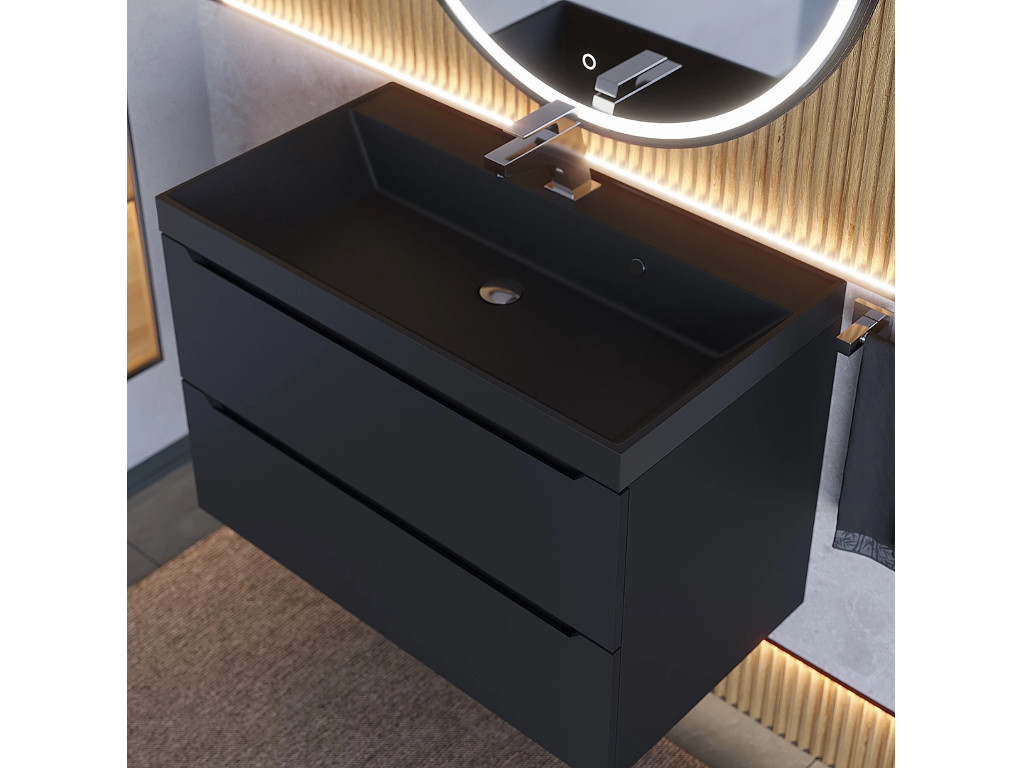 - Тумба с раковиной Uperwood Tanos-Classic Quartz черная/уголь 80 см