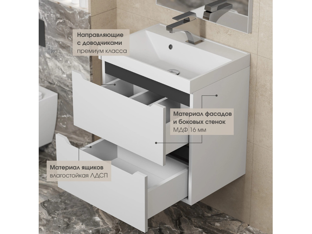 Тумба с раковиной Uperwood Tanos матовая белая/графит 50 см