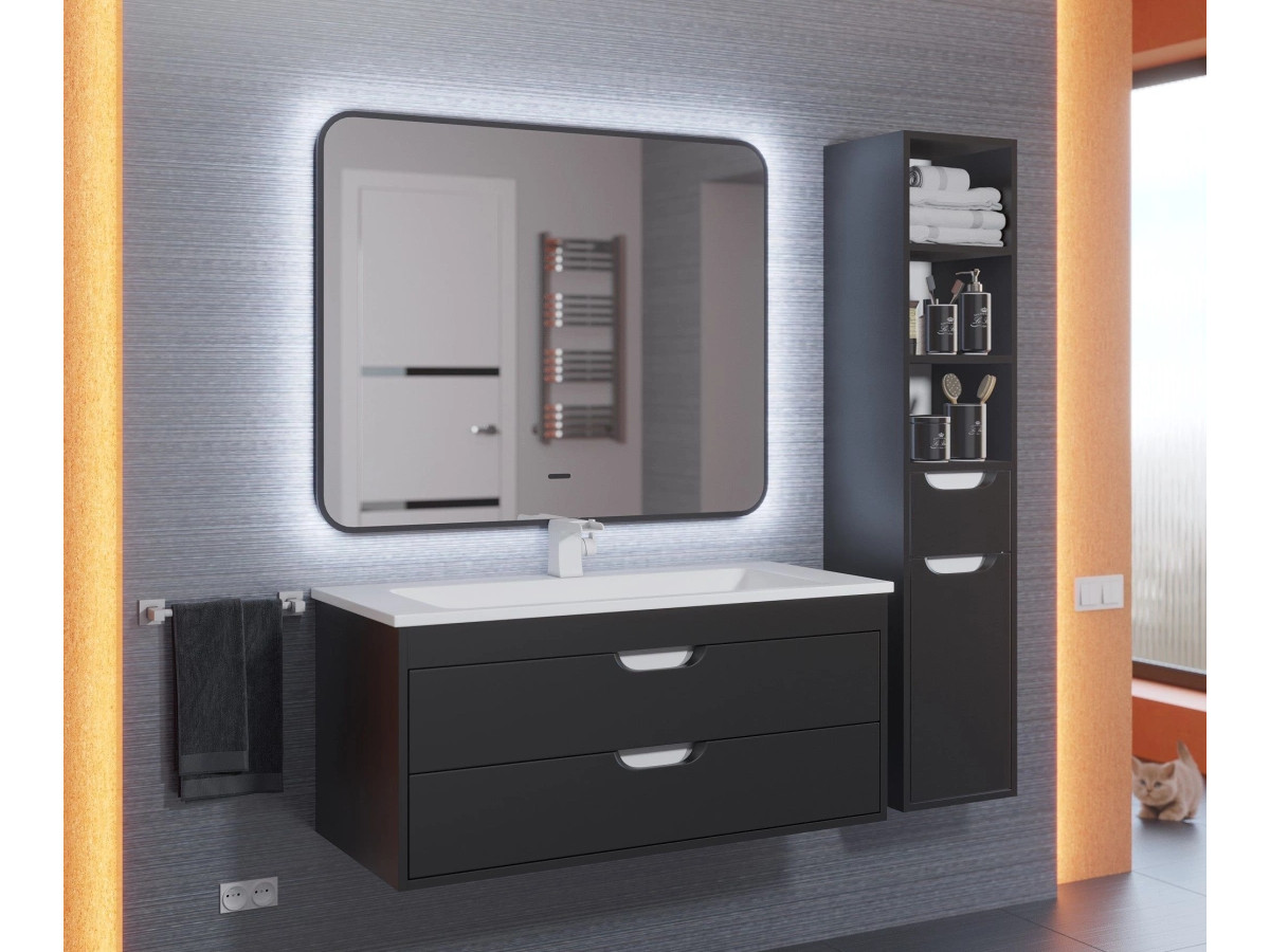 - Зеркало Uperwood Modul черное холодная подсветка 65х80 см
