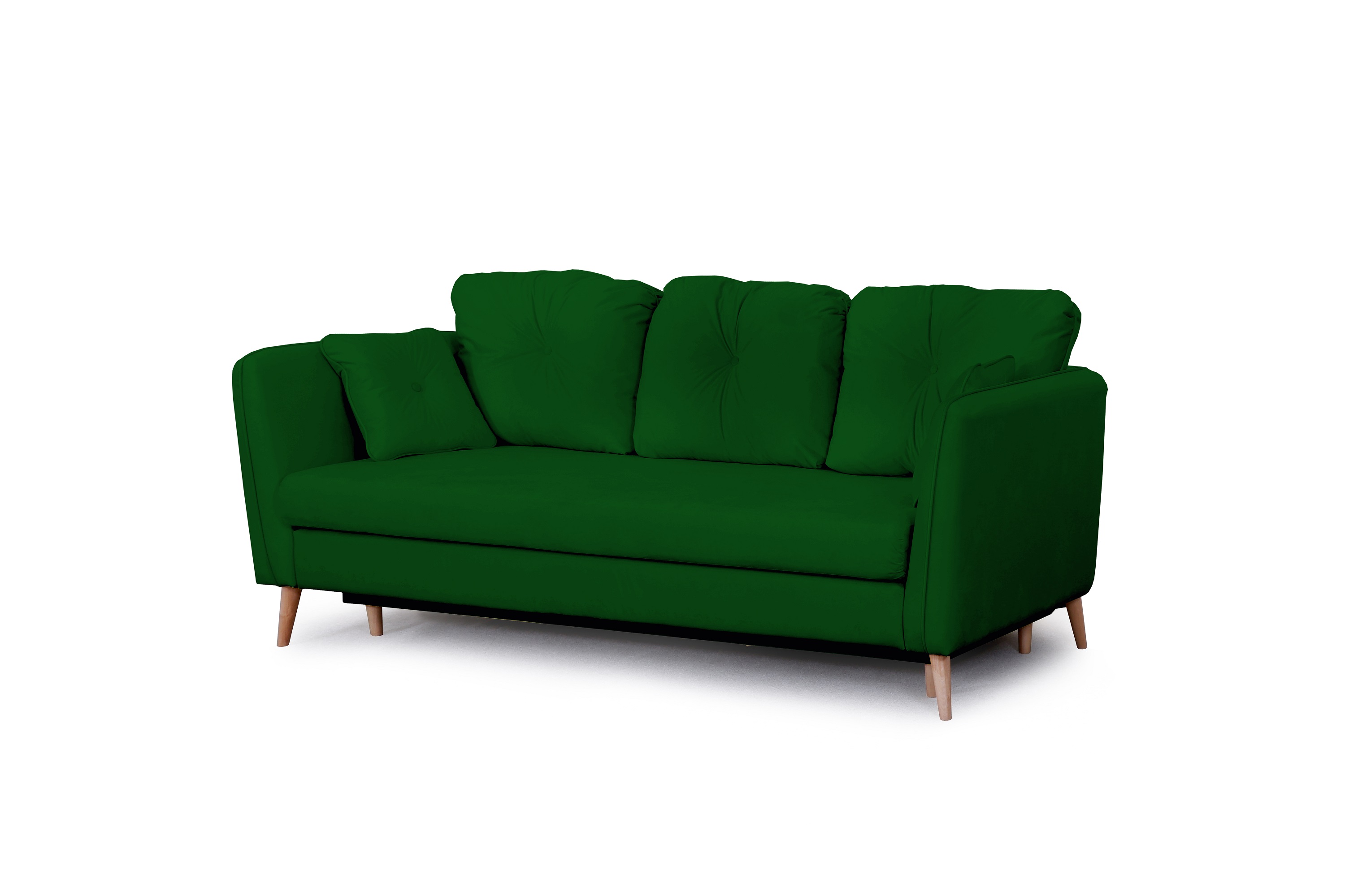 Элементы декора: Декоративные опоры из натуральной древесины (берёза), декоративная отстрочка, декоративные утяжки с пуговицами на подушках