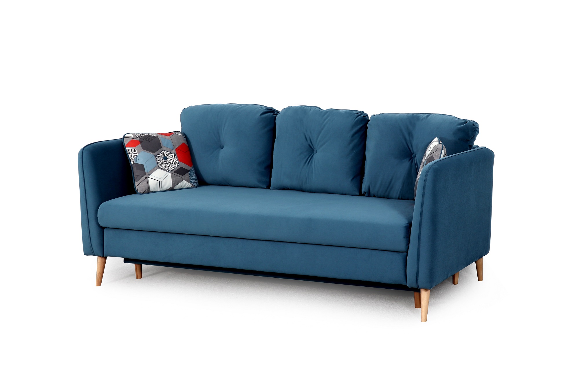Элементы декора: Декоративные опоры из натуральной древесины (берёза), декоративная отстрочка, декоративные утяжки с пуговицами на подушках