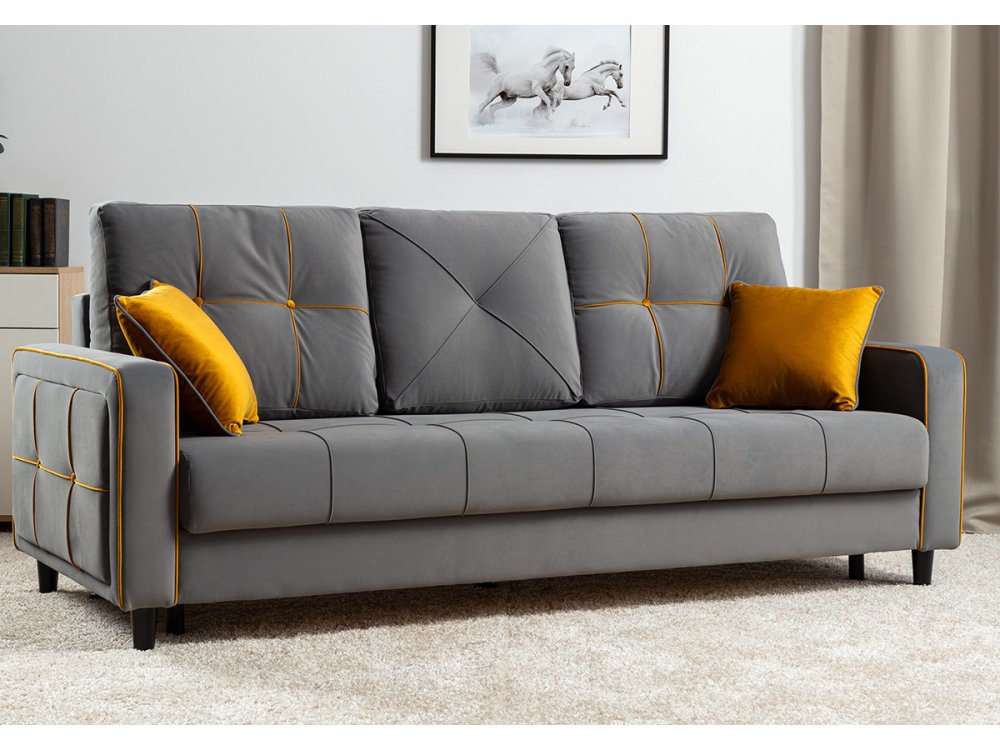 - По торцам подлокотников и думках контрастный декоративный кант.