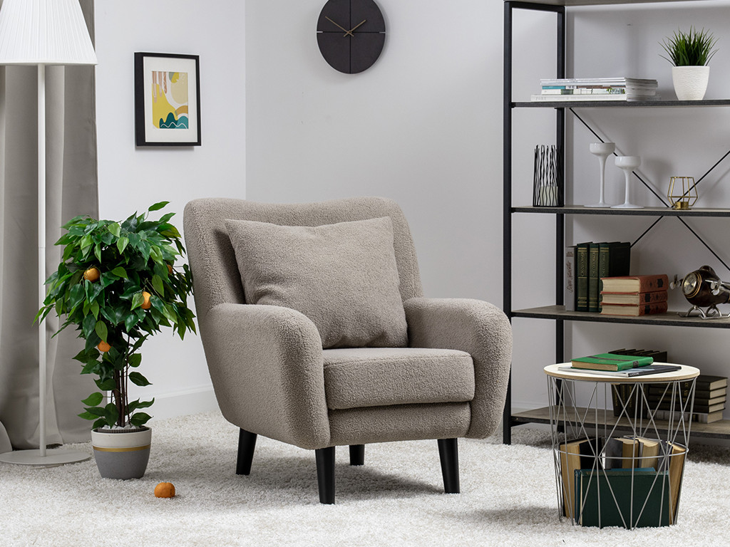 Декор: Ткань букле делает кресло особенно уютным и мягким. Приспинная подушка в цвете кресла