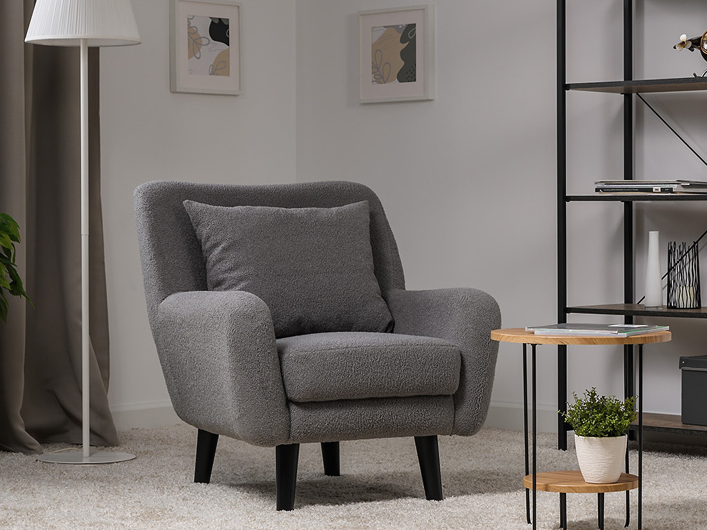 Декор: Ткань букле делает кресло особенно уютным и мягким. Приспинная подушка в цвете кресла