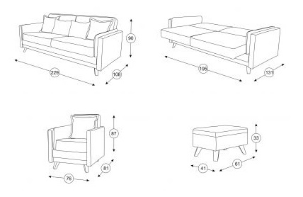 Характеристика: Каркас выполнен из ЛДСП, ДСП, фанеры, хвойного и березового бруса. Элементы сиденья и спальная часть выполнены из ППУ и блока плоских пружин «змейка». Наполнитель подушек – полиэфирное волокно. Опоры – пластмасса.