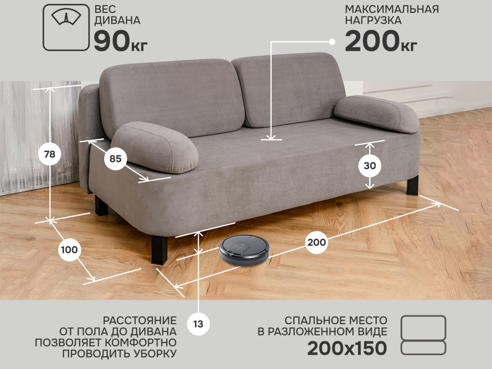 - Спальное место: 1500х2000 мм