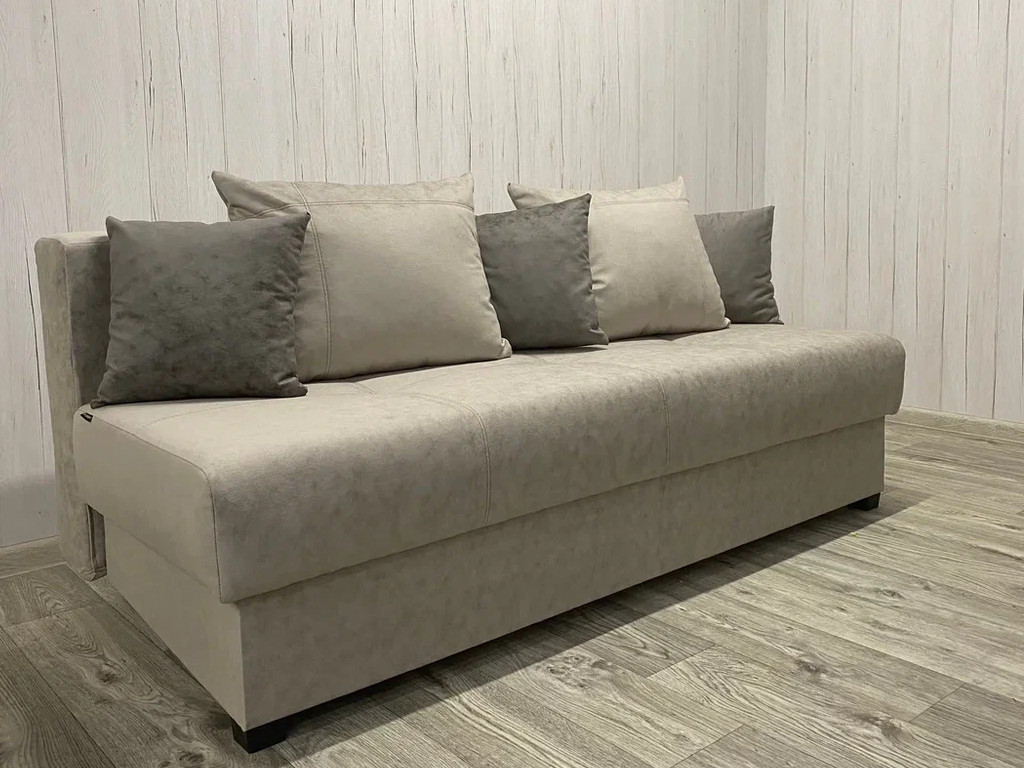 Декор: двойная строчка, утяжки. Две приспинные подушки и три декоративные в комплекте.