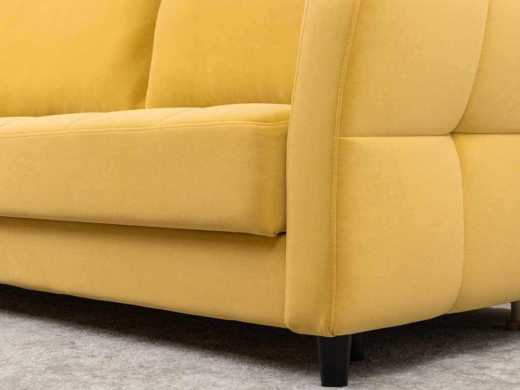 Ровная отстрочка по всему периметру сидения и стежка? создающая эффект пышности выделенных форм. Подлокотники прямые с изгибом в наружные стороны, с выраженной стежкой по лицевой стороне. Стежка на посадочной части дивана.