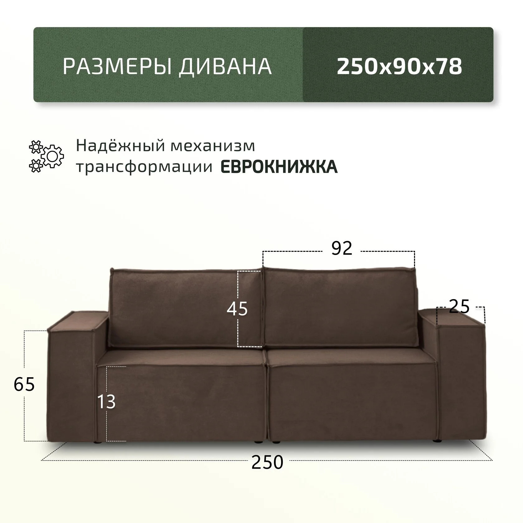 Размер ШxГxВ: 2520x900x780 мм