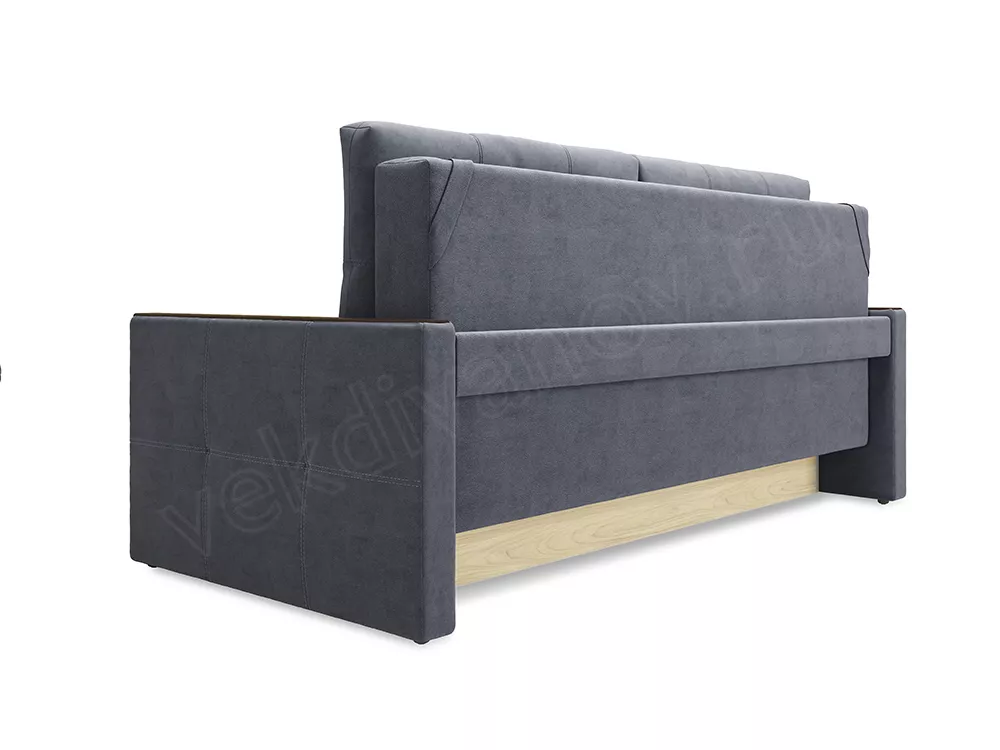 Наполнитель: в основании спального места независимый пружинный блок с дополнительным многослойным покрытием: термовойлок, высокоэластичный пенополиуретан, синтепон; подушки спинки имеют внутренний чехол, наполнитель комбинированный, гипоаллергенный пух «комфорель» с пенополиуретановой крошкой. Накладки – МДФ цвета венге.