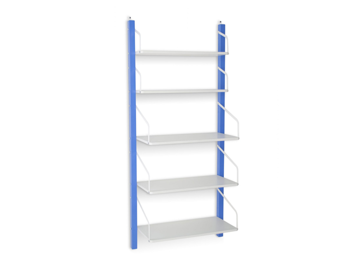 Конструкция детского стеллажа навесная и крепится к стене с помощью двух надежных металлических мебельных навесов. Стеллаж состоит из 5 полок. Высокопрочная конструкция стеллажа позволяет выдержать нагрузку на одну полку до 10 кг.